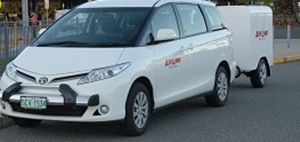 We offer this late model Luxury TOYOTA TARAGO (Previa). Providing comfortable seating for up to 7 passengers. These cars are air conditioned, plush velour interior, dark tinted windows, reading lights and available with a purpose biult luggage trailer for all Airport transfers